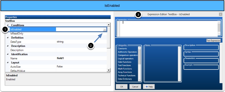 La propriété Is Enabled peut contenir une expression qui va déterminer si l'élément est activé ou non. Par défaut, il est activé.