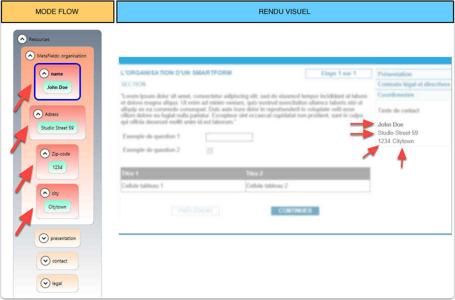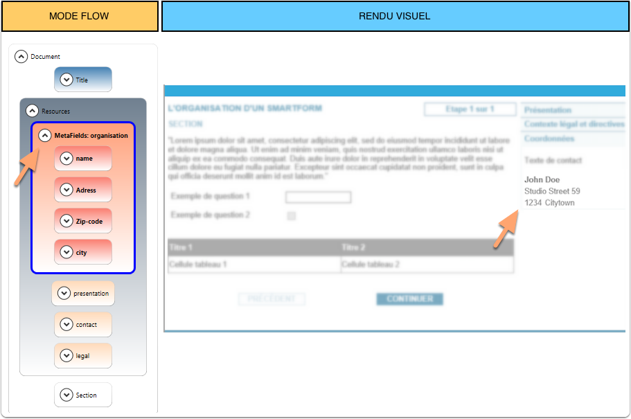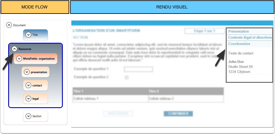 Il s'agit des champs d'identification du document, qui permettent de personnaliser l'environnement du formulaire et les coordonnées de l'organisation.