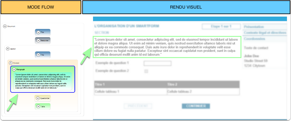 Comme son nom l'indique, un Paragraph permet de contenir le texte principal de votre document et des question situées hors de l'élément QuestionSet.